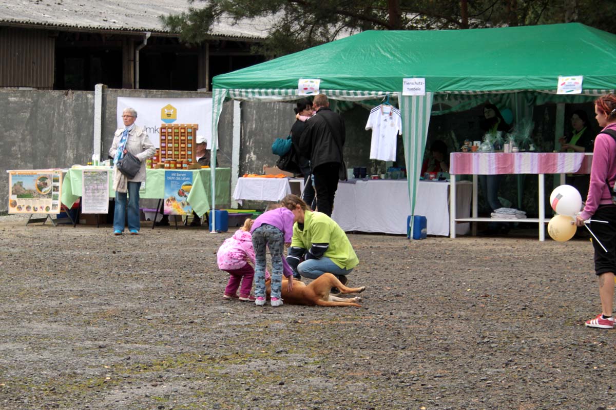 Was für ein Tag – der Wahlsonntag am 22. September 2013. Vielleicht war es die Bundestagswahl (weil man ja eh schon einmal draußen unterwegs war), vielleicht auch das gute Wetter, ganz bestimmt aber das Interesse an unseren Tieren und unserer Arbeit, die an diesem Tag weit über 700 Besucher in unser Tierschutzliga-Dorf zum Tag der offenen Tür trieb. Bereits lange vor dem Öffnen der Tierheimtore standen die ersten Besucher davor und schon kurze Zeit später war unser Parkplatz vorm Bunker bis auf den letzten Platz belegt.