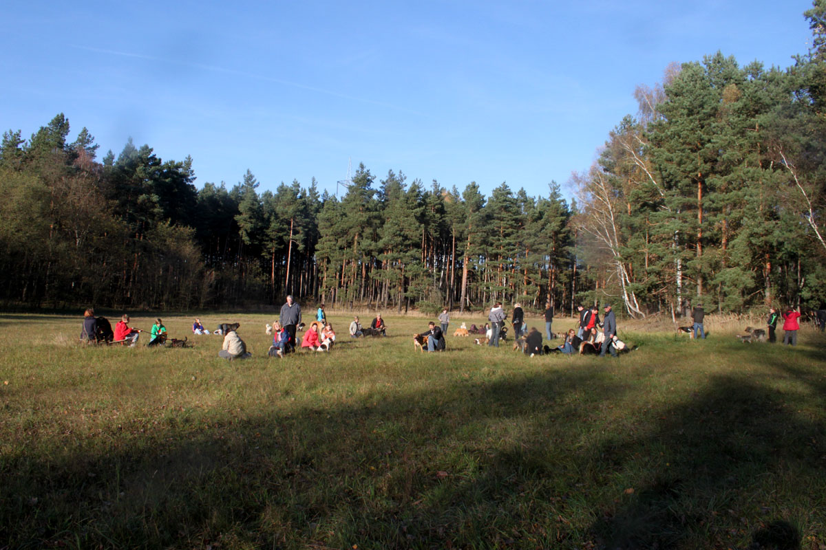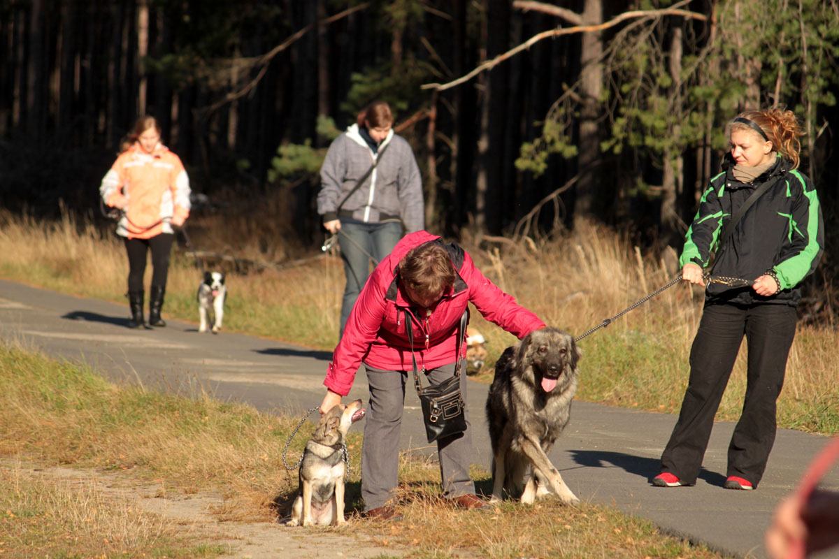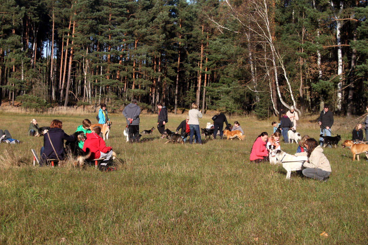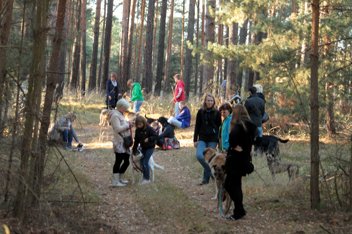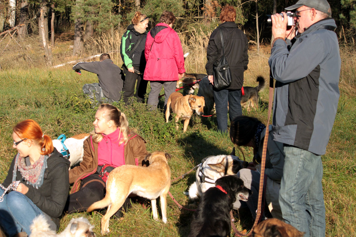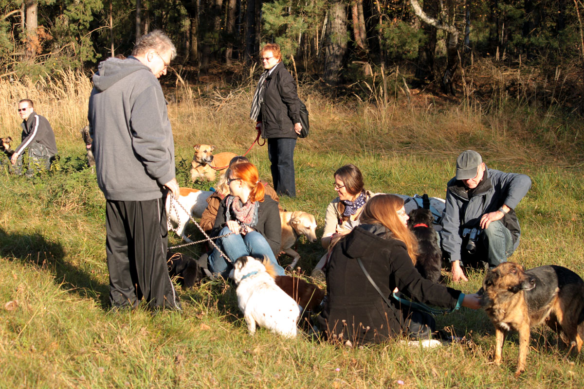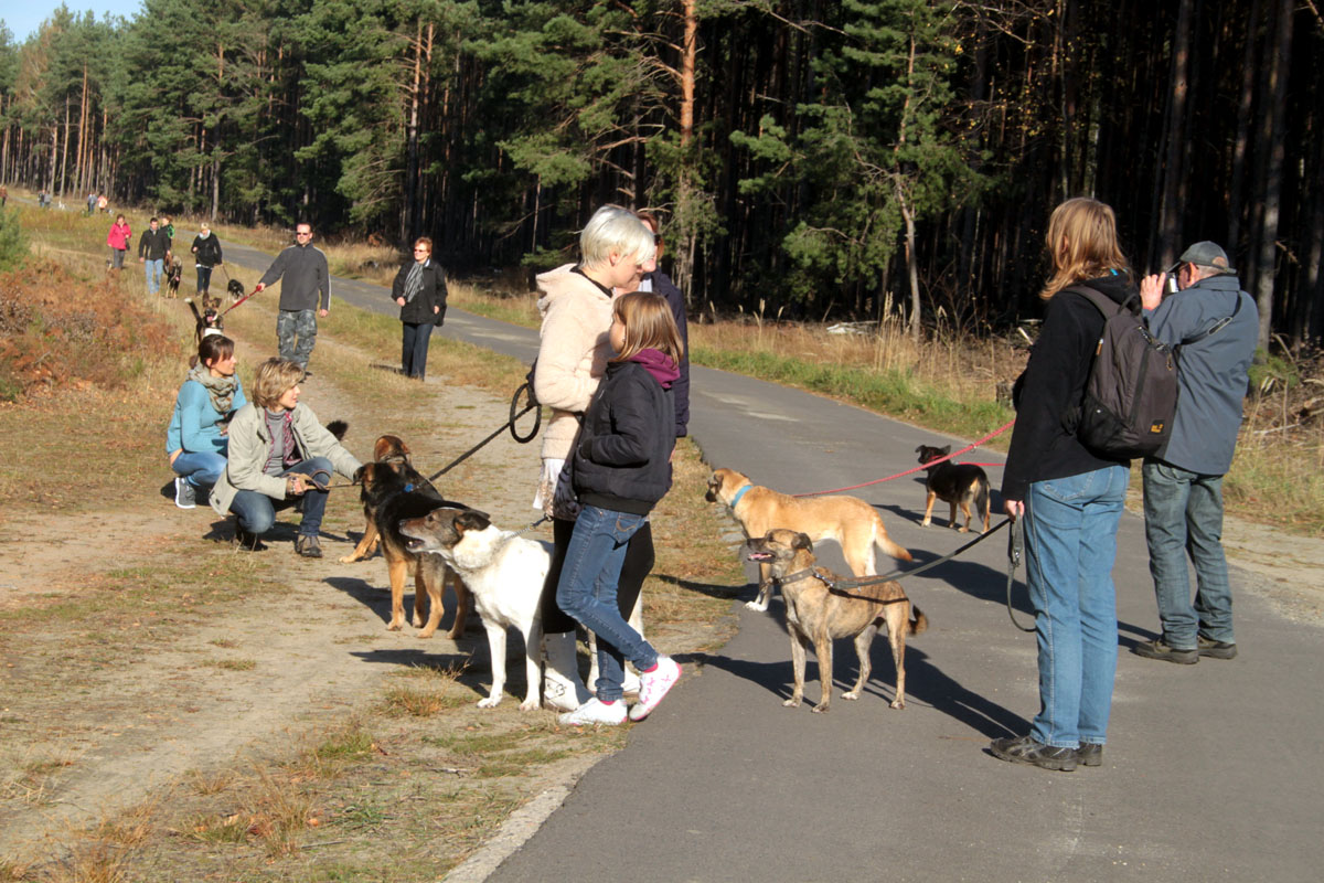 Am Reformationstag trafen wir uns zur 3. Tierheim-Hundewanderung 2013. 45 Hundefreunde mit 32 Tierheimhunden und 7 ehemaligen Schützlingen machten sich auf eine 3,5 stündige Tour durch unsere ans Tierheim grenzenden Wälder und Wiesen. Vorbei an zwei Waldseen, bei herrlichstem Sonnenschein, haben alle das traumhafte Wetter und die gute Laune von Mensch und Tier genossen. Für unsere Tierheimschützlinge war die Wanderung wieder eine tolle Abwechslung vom Tierheimalltag. Alle liefen nach kurzem anfänglichen Ziehen und Bellen brav nebeneinander her, ließen sich in den Pausen kuscheln und knüpften Freundschaften untereinander.