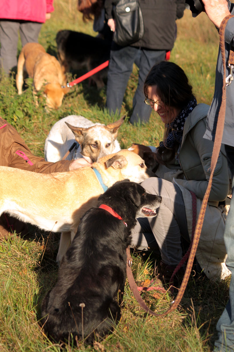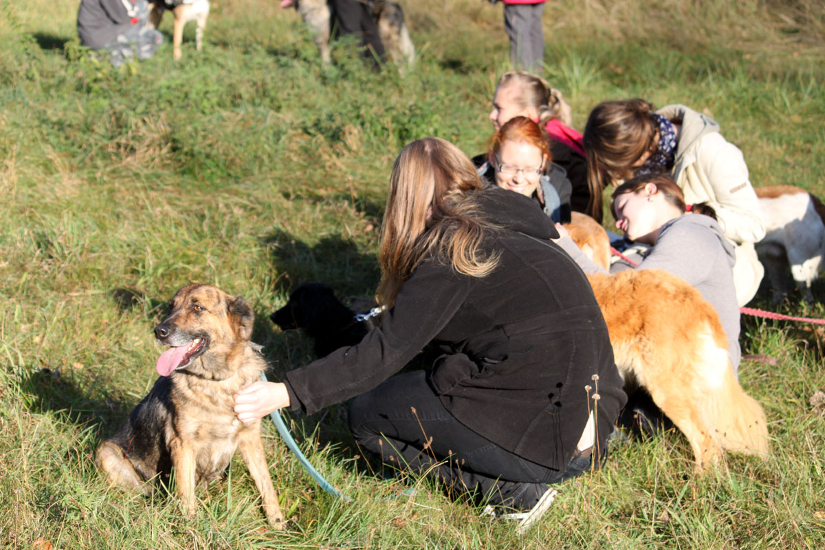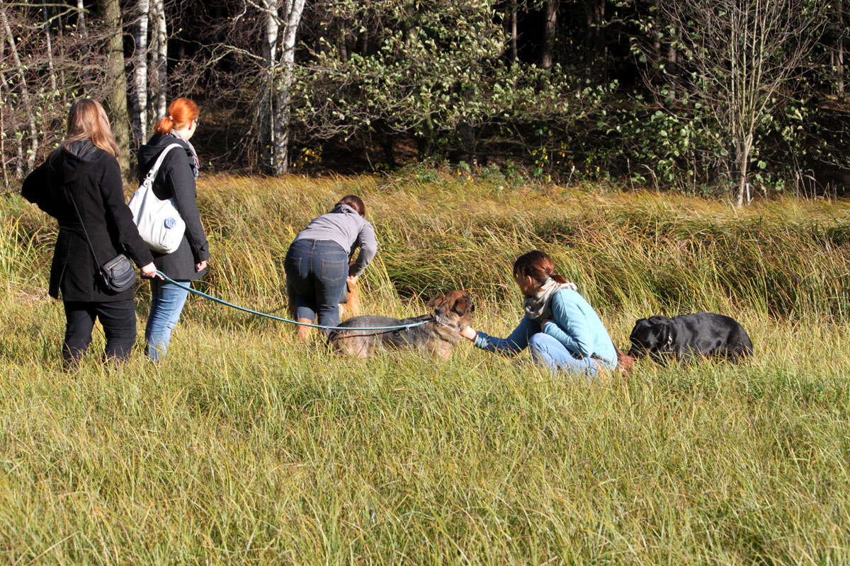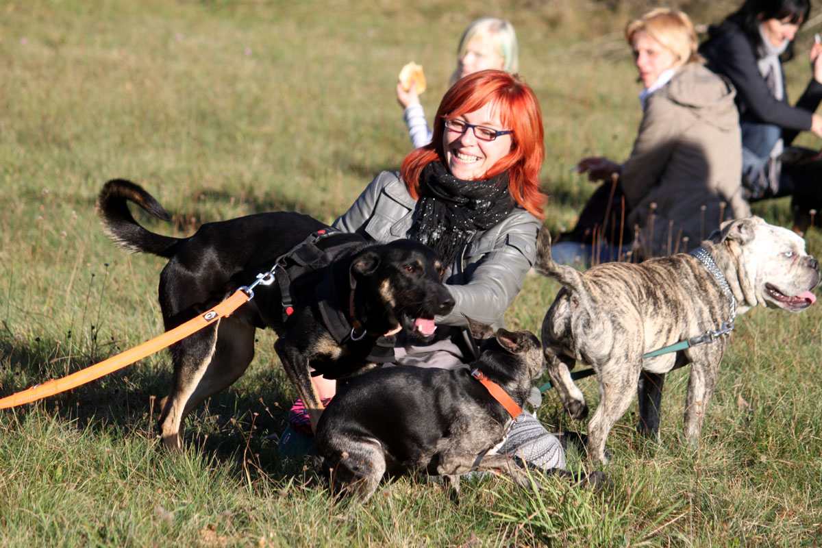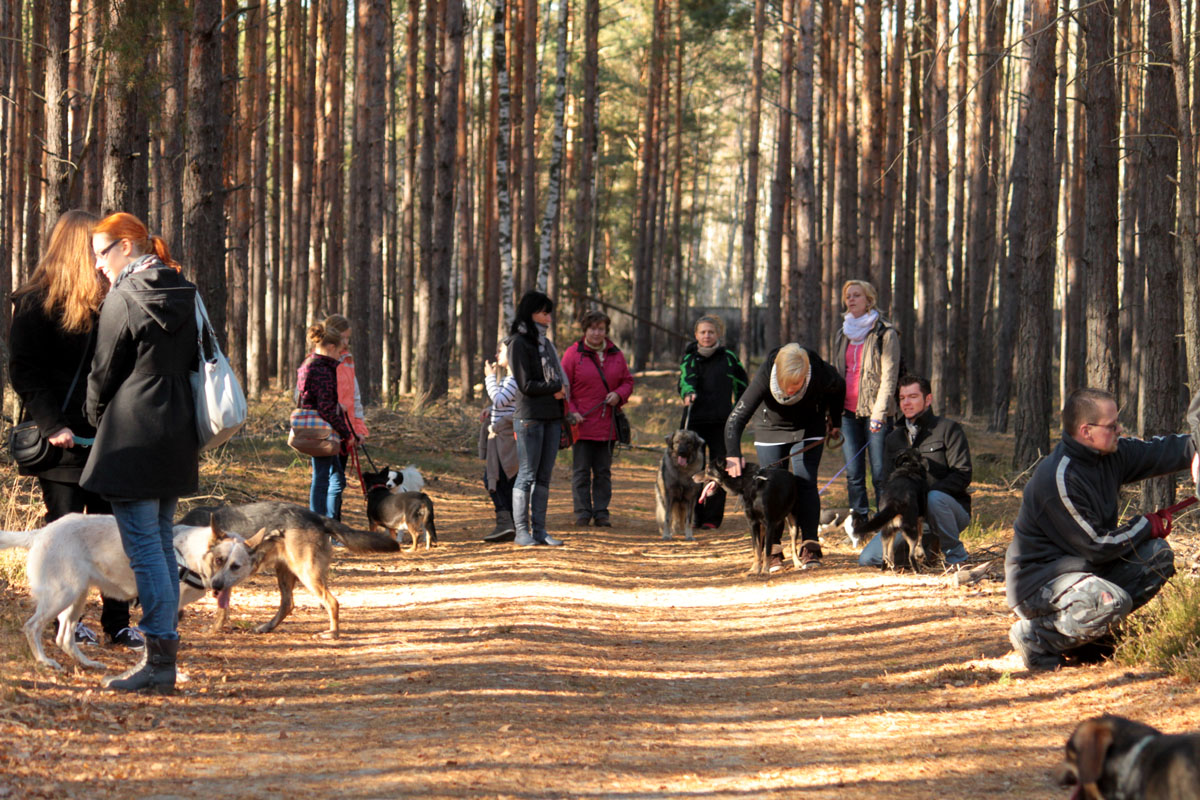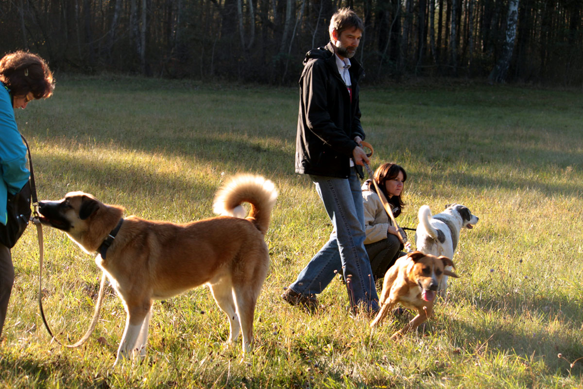 Am Reformationstag trafen wir uns zur 3. Tierheim-Hundewanderung 2013. 45 Hundefreunde mit 32 Tierheimhunden und 7 ehemaligen Schützlingen machten sich auf eine 3,5 stündige Tour durch unsere ans Tierheim grenzenden Wälder und Wiesen. Vorbei an zwei Waldseen, bei herrlichstem Sonnenschein, haben alle das traumhafte Wetter und die gute Laune von Mensch und Tier genossen. Für unsere Tierheimschützlinge war die Wanderung wieder eine tolle Abwechslung vom Tierheimalltag. Alle liefen nach kurzem anfänglichen Ziehen und Bellen brav nebeneinander her, ließen sich in den Pausen kuscheln und knüpften Freundschaften untereinander.