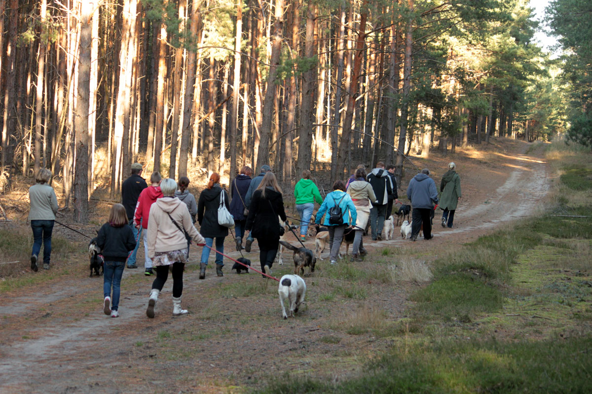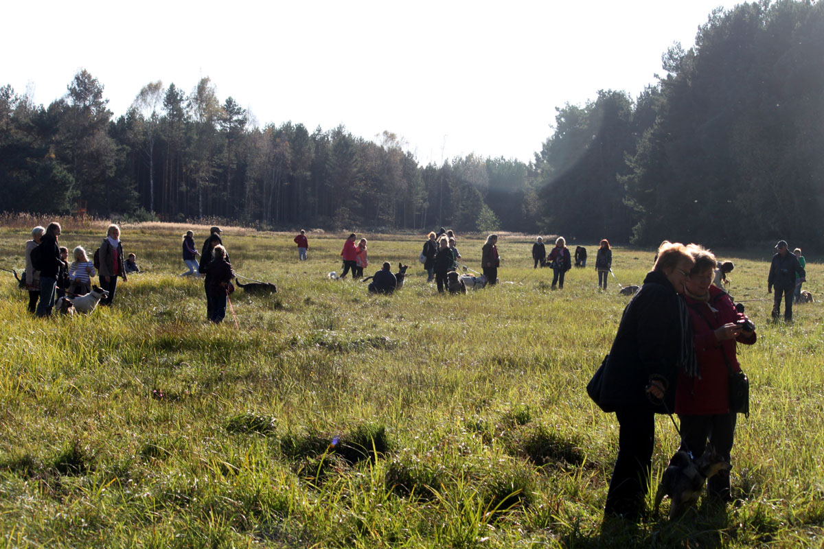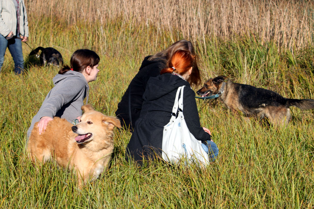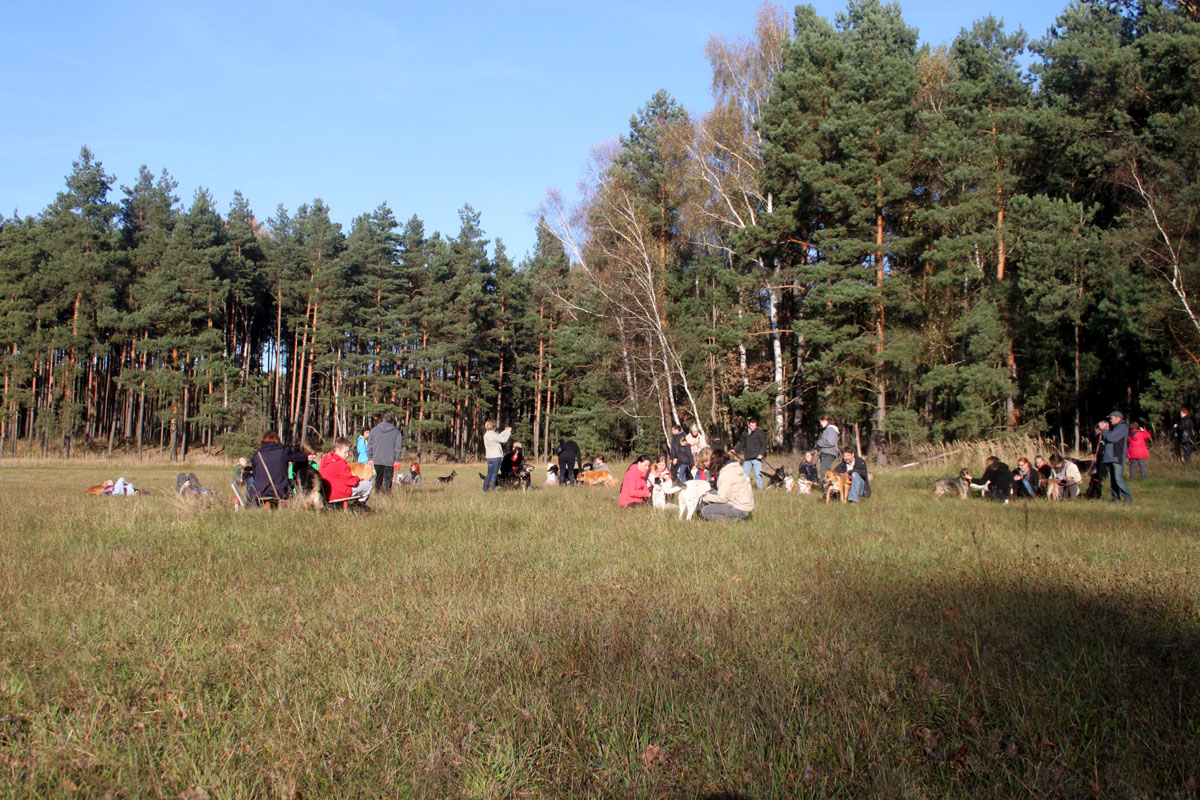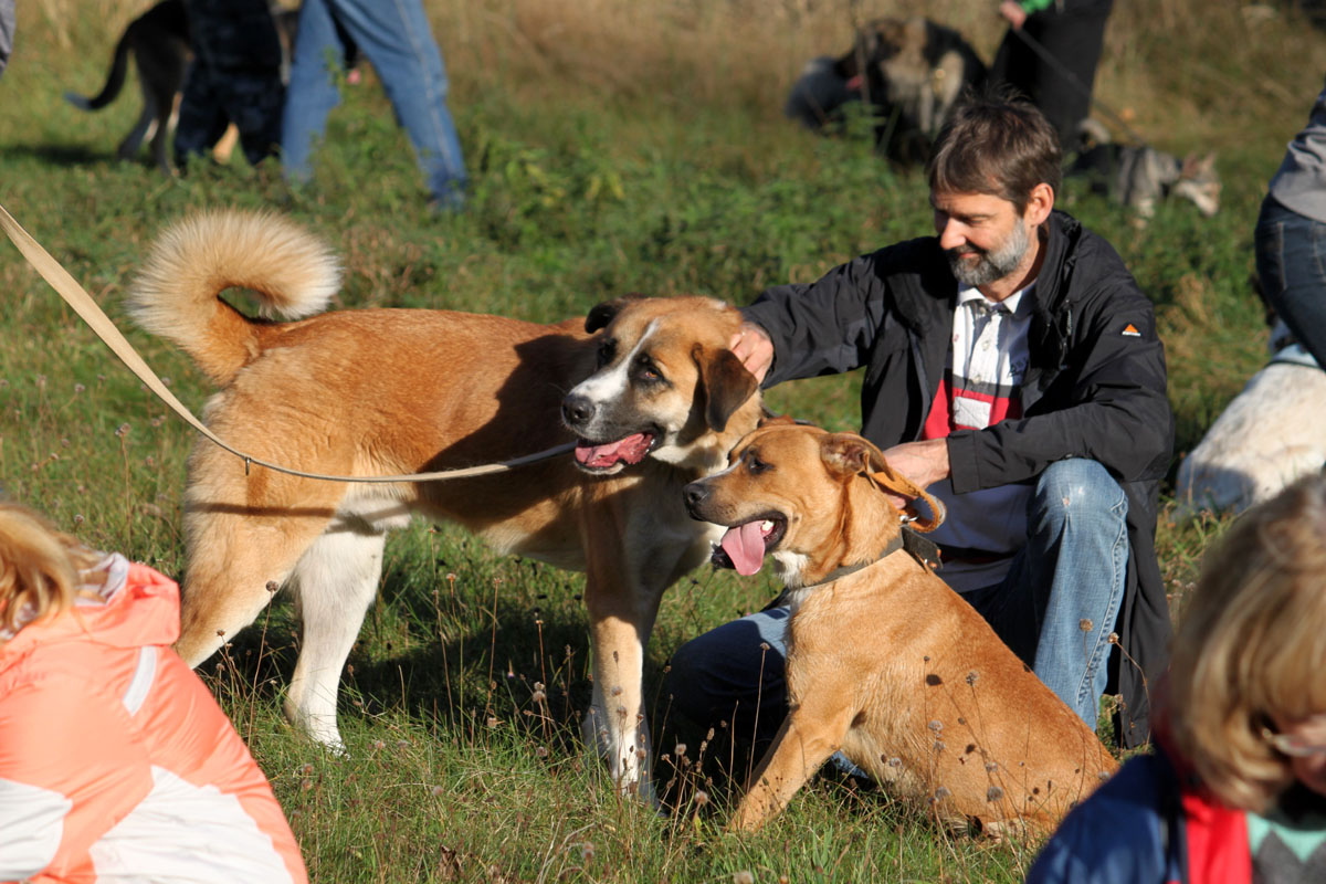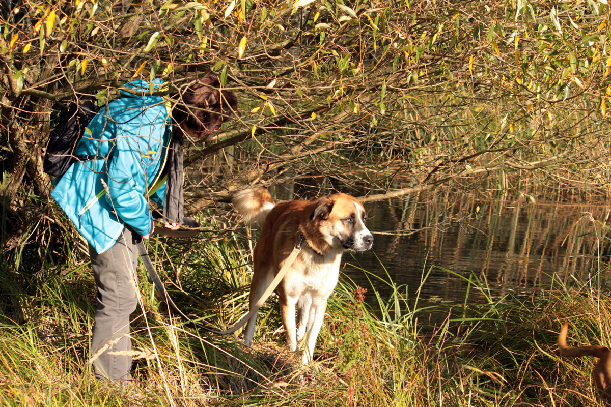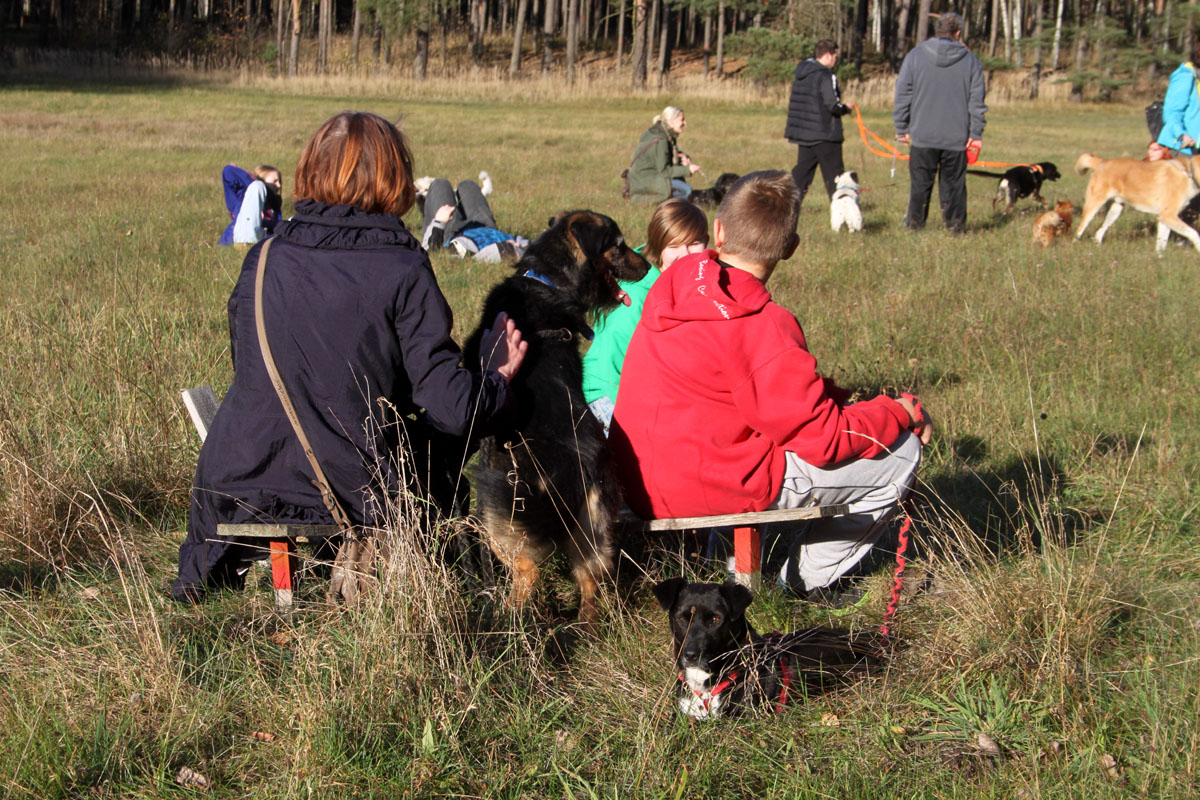 Am Reformationstag trafen wir uns zur 3. Tierheim-Hundewanderung 2013. 45 Hundefreunde mit 32 Tierheimhunden und 7 ehemaligen Schützlingen machten sich auf eine 3,5 stündige Tour durch unsere ans Tierheim grenzenden Wälder und Wiesen. Vorbei an zwei Waldseen, bei herrlichstem Sonnenschein, haben alle das traumhafte Wetter und die gute Laune von Mensch und Tier genossen. Für unsere Tierheimschützlinge war die Wanderung wieder eine tolle Abwechslung vom Tierheimalltag. Alle liefen nach kurzem anfänglichen Ziehen und Bellen brav nebeneinander her, ließen sich in den Pausen kuscheln und knüpften Freundschaften untereinander.