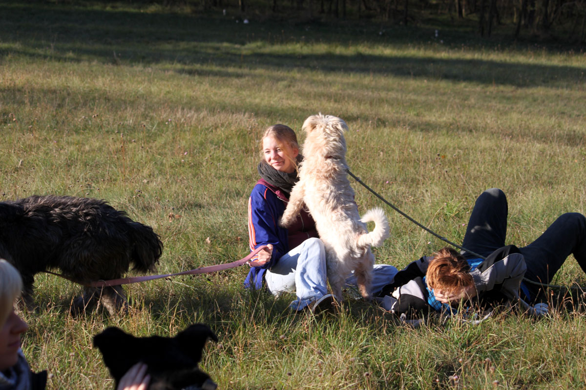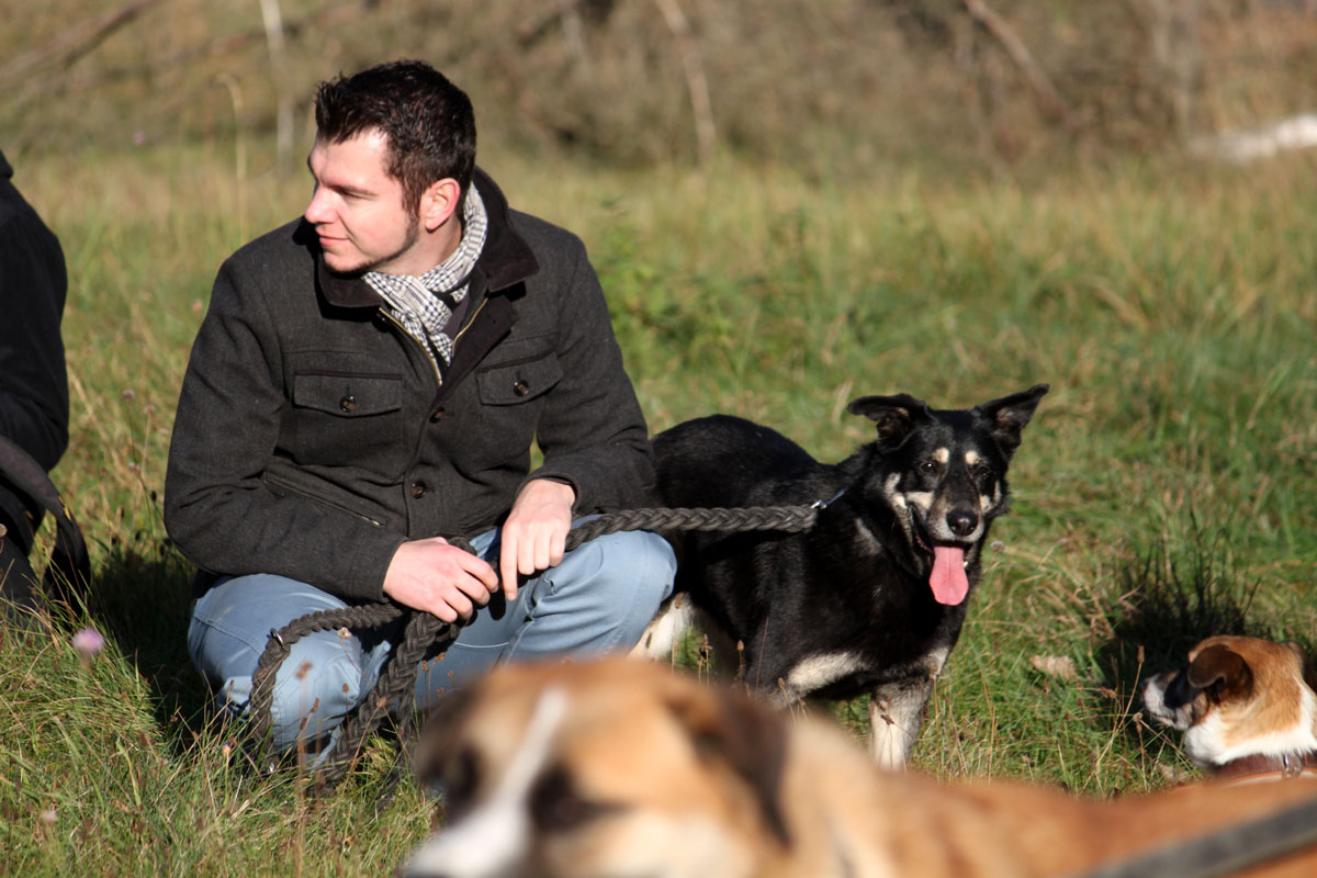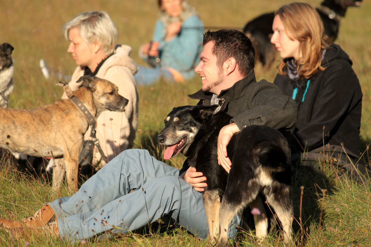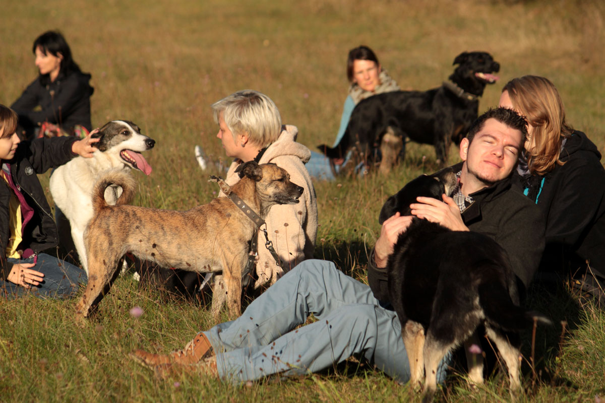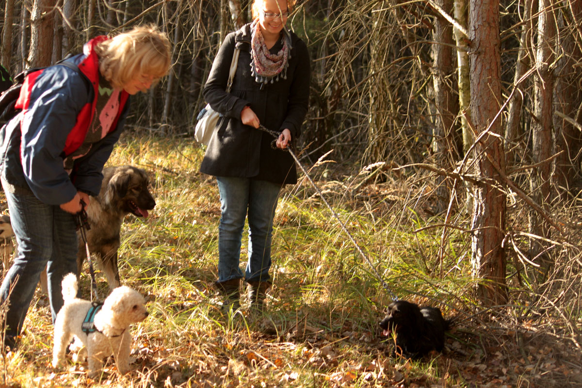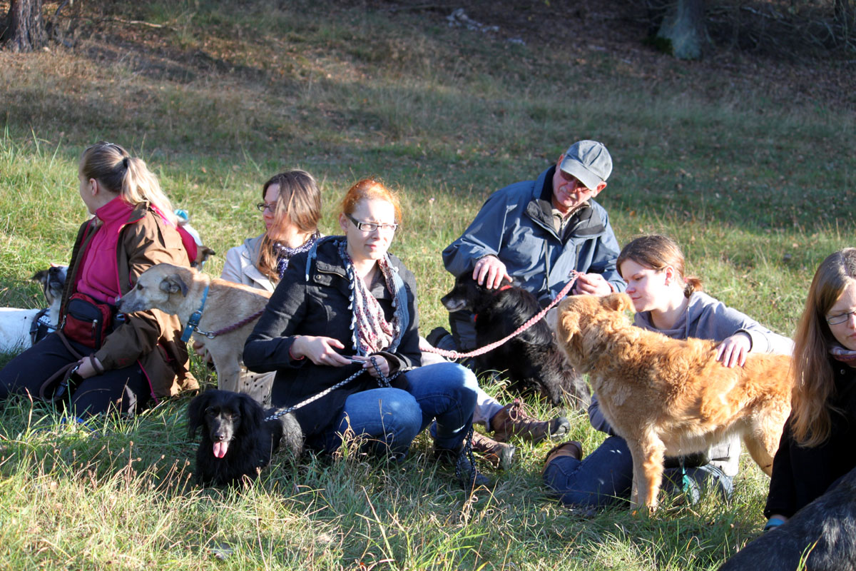 Am Reformationstag trafen wir uns zur 3. Tierheim-Hundewanderung 2013. 45 Hundefreunde mit 32 Tierheimhunden und 7 ehemaligen Schützlingen machten sich auf eine 3,5 stündige Tour durch unsere ans Tierheim grenzenden Wälder und Wiesen. Vorbei an zwei Waldseen, bei herrlichstem Sonnenschein, haben alle das traumhafte Wetter und die gute Laune von Mensch und Tier genossen. Für unsere Tierheimschützlinge war die Wanderung wieder eine tolle Abwechslung vom Tierheimalltag. Alle liefen nach kurzem anfänglichen Ziehen und Bellen brav nebeneinander her, ließen sich in den Pausen kuscheln und knüpften Freundschaften untereinander.