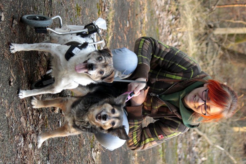 Die Pflege des kleinen Mischu ist natürlich aufwendiger als bei einem gesunden Hund. Er muss Windeln tragen, da er sein Pipi nicht immer unter Kontrolle hat. Sein Zimmer wird mit Decken ausgelegt, damit er seine Beinchen nicht wund scheuert, wenn er durch die Gegend robbt. Aber am liebsten ist Mischu in seinem Rollwagen, dann flitzt das Männlein durch die Natur und es gibt für ihn kein Hindernis.