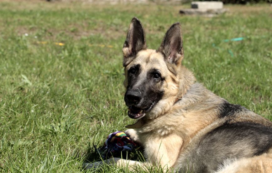 Im April 2014 holten wir die fast blinde Schäferhündin Isabell aus einem polnischen Tierheim zu uns ins Tierschutzliga-Dorf, denn ihr drohte die Einschläferung aufgrund von Platzmangel. Isabell wurde damals in Polen im Tierheim von ihrem Frauchen abgegeben, da diese nach Deutschland ging, um hier Arbeit zu finden. Sie hatte Isabell von klein auf und die Hündin sehr geliebt. Kurz nach Isabells Umzug zu uns, nahm die Besitzerin mit uns Kontakt auf. Sie erzählte, dass Isabell mit einem kleinen Dackel aufgewachsen war und aufgrund einer Pfefferspray-Attacke eines Tierquälers den größten Teil ihrer Sehfähigkeit eingebüßt hatte. Dies erklärte uns Isabells Kopfscheuheit. Bei einer Untersuchung stellte sich leider auch noch heraus das Isabell an der sogenannten „Schäferhund Keratitis“ leidet, irgendwann wird sie vollkommen erblinden. Auch wurde eine Schilddrüsen- und Bauchspeicheldrüsen-Unterfunktion diagnostiziert. Isabell ist ihr leben lang auf Medikamente angewiesen.