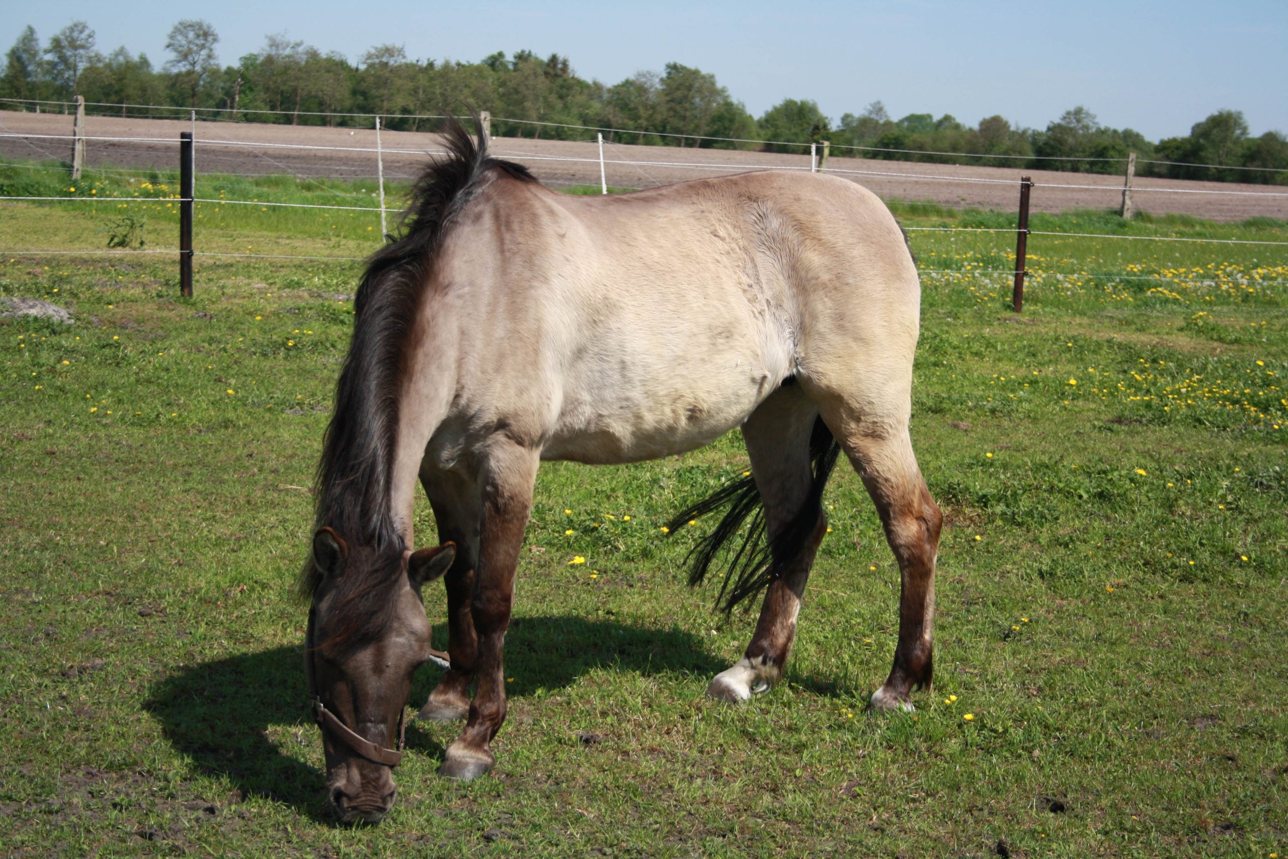 Mary ist eine Konik-Stute, geboren 1999 mit einem Stockmaß von 136 cm. Mary wurde bei uns abgegeben, weil sie nicht allein, ohne Begleitung anderer Pferde, ins Gelände gehen wollte - mit einem anderen Pferd oder in einer Gruppe geht sie sehr gern mit!