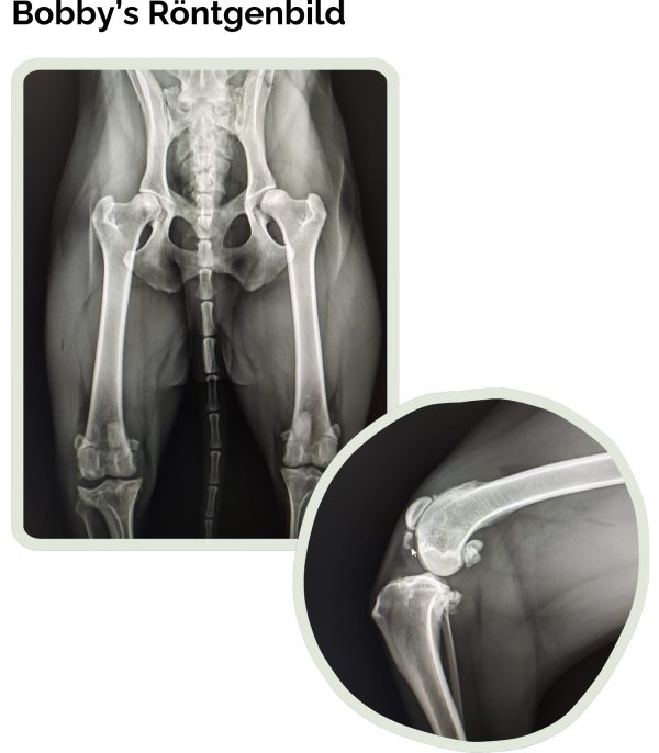 Vor kurzem begann Bobby plötzlich leicht zu humpeln. Schnell ahnten wir, dass etwas nicht mit ihm stimmt. Ein Tierarztbesuch brachte dann die erste Gewissheit: Kreuzbandriss.