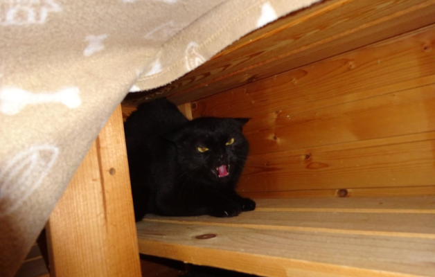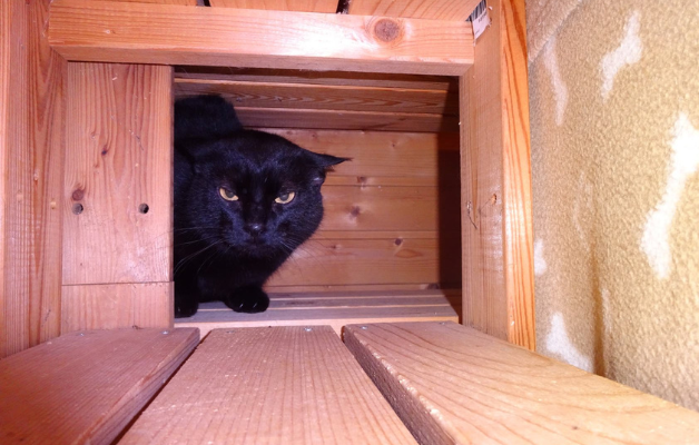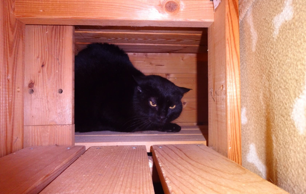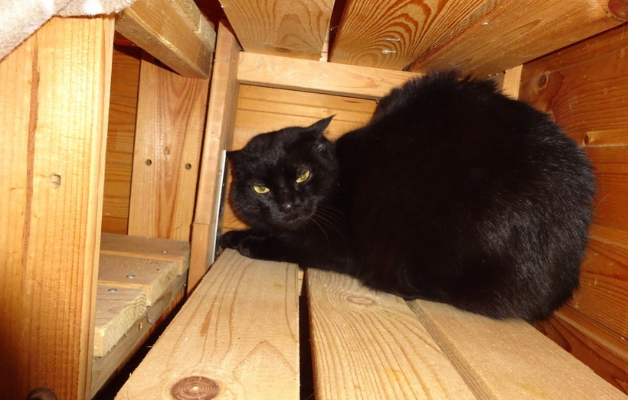 Er ist ein ehemaliger Streuner aus Spanien, etwa 5 Jahre alt und schwarz. Dort war er drei Jahre in einer Pflegestelle mit 20 Katzen in einem Innenhof. Dann wurde er nach München in eine Wohnungshaltung vermittelt. Selbst nach fast zwei Jahren dort und liebevollen Bemühungen wurde er nicht zahm. Tagsüber lebte er versteckt und kam nur nachts zum Fressen und zu seinen Spielzeugen hervor. Nähe von Menschen stresst ihn sichtlich. Hier bei uns hat er erstmal ein eigenes Gartenhäuschen und die Katzenklappe ist auf seine Chipnummer programmiert. Bald nach Eingewöhnung aktivieren wir sie, dass sie nur für ihn öffnet und nur er und keine andere Katze dort Futter hat. Sicher wird er dann seine Unabhängigkeit und Freiheit genießen.